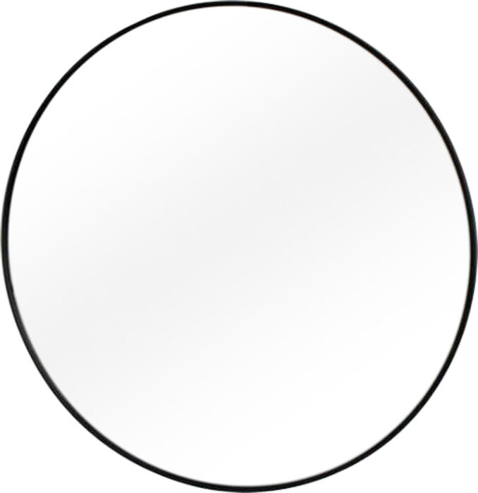 מראה עגולה עם מסגרת ממתכת, קו נקי וחלק.