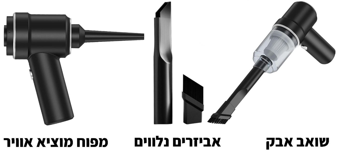 מיני שואב אבק לרכב נטען לרכב אשר נותן אופציה נוספת להיות מפוח ( מוציא אוויר )